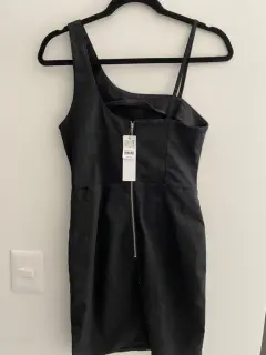 Bello super sexy vestido corto negro descubierto de un hombro tela super buena calidad como corresponde a la marca nuevo no se uso estrenalo basico para tu closet