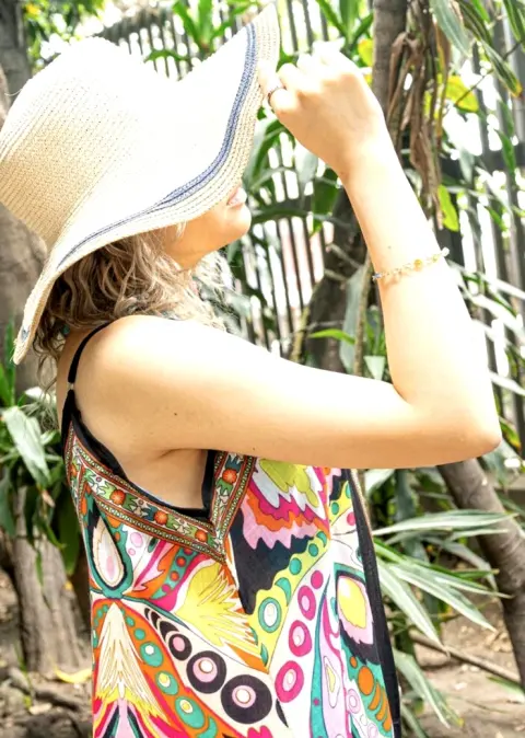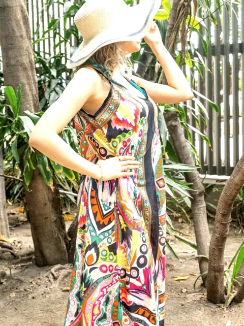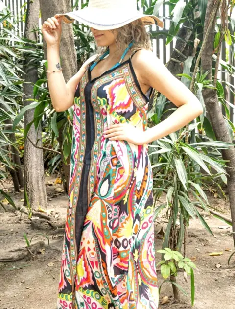 Precioso vestido de salida de playa, de tirantes, muy colorido, bastante amplio.Unitalla
