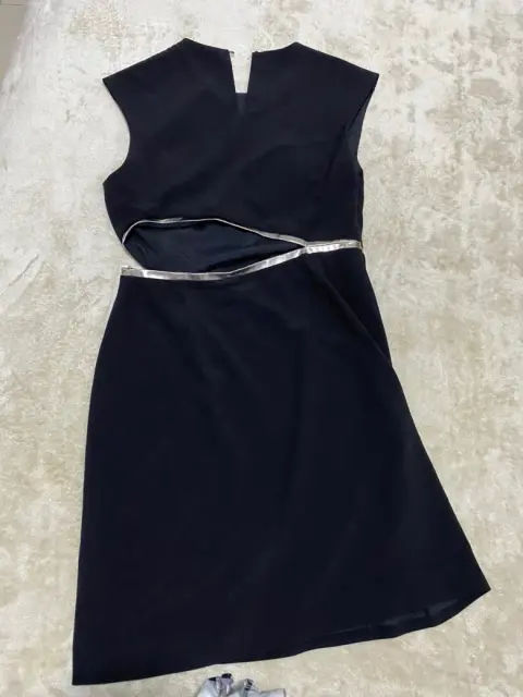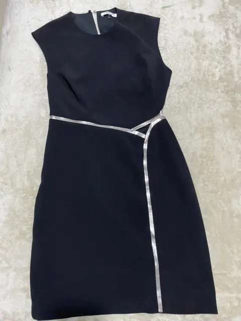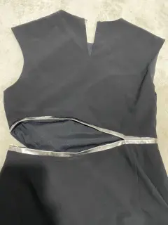 Vestido elegante con abertura ligera en parte de espalda color negro con orillas de color plata talla 10 (M)