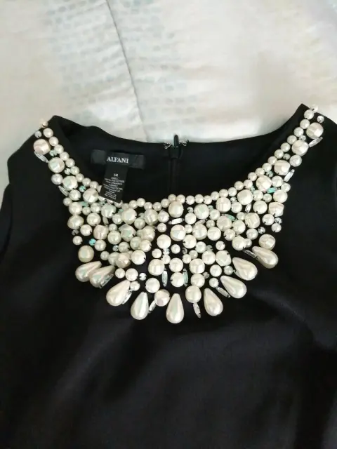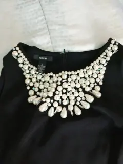 Elegante vestido. Elegante vestido formal de dama, corte recto con forro y hermoso detalle de pedrería en cuello, talla xl negro