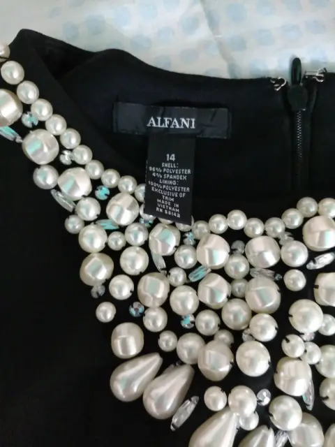 Elegante vestido formal de dama, corte recto con forro y hermoso detalle de pedrería en cuello, talla xl negro