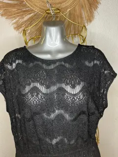Elegante vestido de encaje Andrea TG. Elegante vestido de encaje marca mía de Andrea,Con resorte que remarca la cintura, asimétrico con cola de pato.El vestido desde un inicio se vendió sin forro lo que lo hace versátil ya que puedes juzgar con diferentes fondos o incluso con traje de baño.