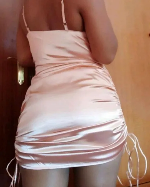 Elegante vestido de satén. Elegante vestido de satén ideal para cualquier ocasión, de cuello redondo, tirantes y cintas a los costados. Color oro rosado de talla grande. 💕