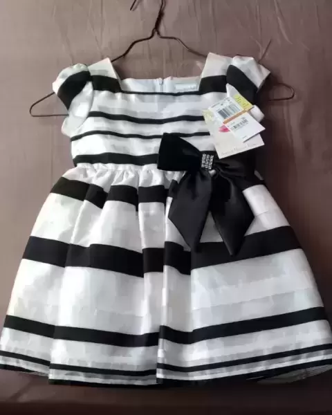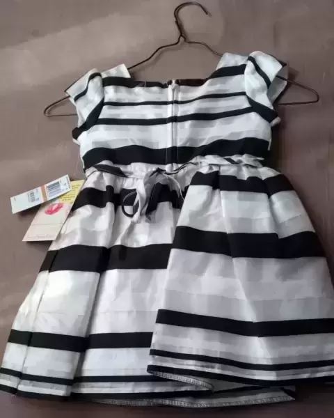 Elegante Vestido de Sweet Heart Rose - kids. Hermoso vestido blanco a rayas beige y negras con crinolina y moño negro. Ajustable en la parte trasera