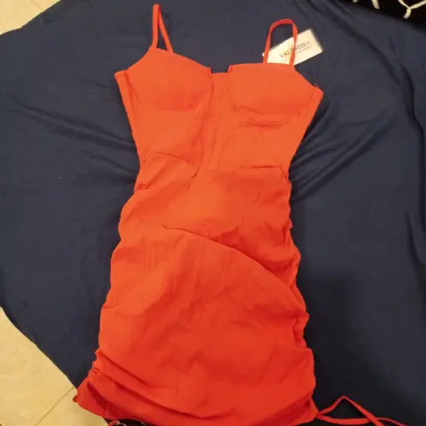 Es un vestido rojo. Esta totalmente nuevo trae etiqueta y esta super padre, solo q ya no lo pude usar
