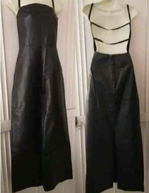 LUXURY de GAMA ALTA VESTIDO de cuero/piel GENUINE LEATHER 100% ORIGINAL de marca SHAPES EX largo corte strapless sin espalda tirantes de elástico autoajustable EXELENTES CONDICIONES (medidas en foto NO EXPANDEX) interior con forro tipo faja (foto ilustrativa) EXELENTES CONDICIONES PODRÍA PASAR POR NUEVO!.