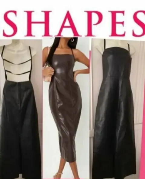 Estraple SEXY GENUINE LEATHER. LUXURY de GAMA ALTA VESTIDO de cuero/piel GENUINE LEATHER 100% ORIGINAL de marca SHAPES EX largo corte strapless sin espalda tirantes de elástico autoajustable EXELENTES CONDICIONES (medidas en foto NO EXPANDEX) interior con forro tipo faja (foto ilustrativa) EXELENTES CONDICIONES PODRÍA PASAR POR NUEVO!.