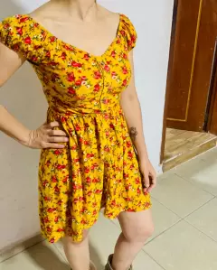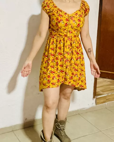 Fresco vestido campirano. Lindo y coqueto vestido, el corte es un poco más corto de adelante y más largo de atrás así como se aprecia en la imagen, trae elástico en mangas y talle, se ve lindo y la tela es ajustable.