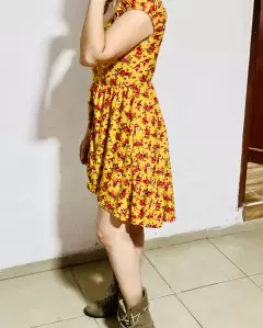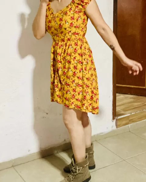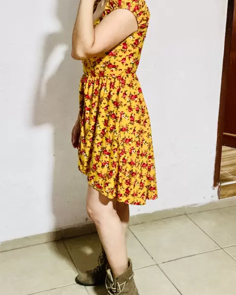 Lindo y coqueto vestido, el corte es un poco más corto de adelante y más largo de atrás así como se aprecia en la imagen, trae elástico en mangas y talle, se ve lindo y la tela es ajustable.