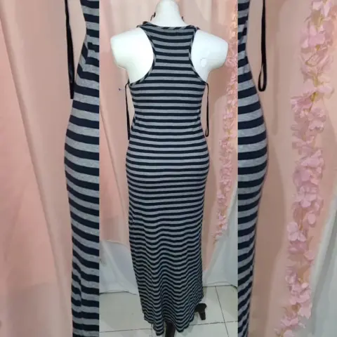 Vestido largo marca GAP TALLA CH. CON RALLAS AZULES ES GRIS Y ESTIRA