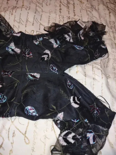 Hermoso maxivestido de fiesta, con pequeñas lentejuelas brillantes, fondo interno y una pequeña crinolina nuevo con etiqueta.