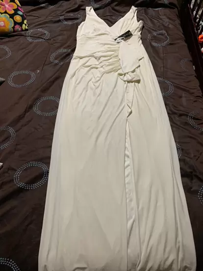 Hermoso vestido blanco, nuevo con etiqueta, talla grande la tela es Licra gruesa doble forro con abertura en una pierna, orma linda figura, (ojo está nuevo pero de la bastilla de ensucio un poco por están en exhibición en tienda)