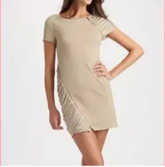 Hermoso vestido. Hermoso vestido color beige con aplicaciones en el mismo tono pero satinadas cierres en el hombro y cadera