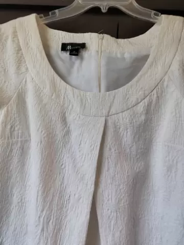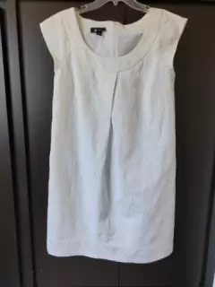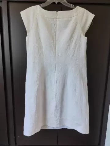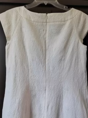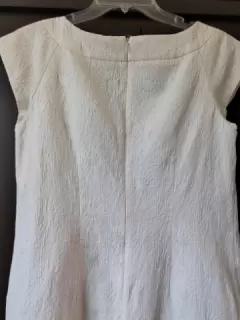 Hermoso vestido blanco, estilo de los años 60', trae cierre en la parte de atrás, tiene un pequeño doblez en la parte de enfrente, trae forro, la tela está grabada de girasoles.