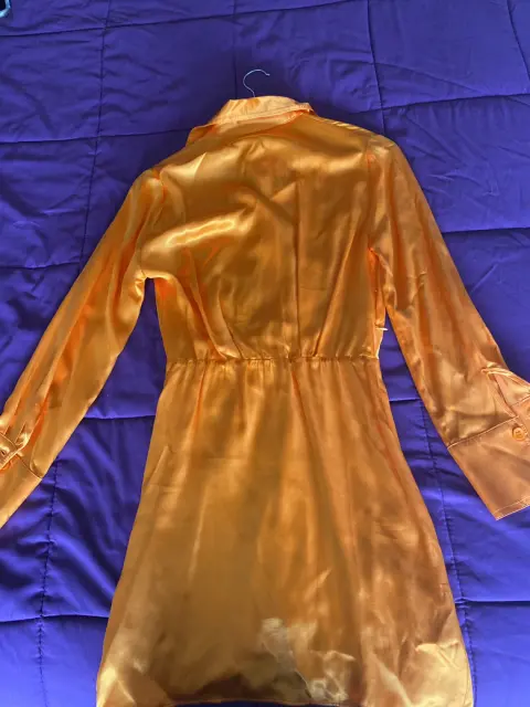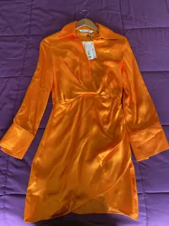 Hermoso vestido color naranja metálico.. Talla S , ideal para fiestas de noche o día , es un vestido de manga larga , no es caliente , se puede usar con mallas y queda hermoso, es un color bastante combinable y llamativo para ser la sensación en cualquier lado ❤️
