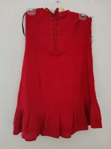 Vestido estilo corset straplee rojo es totalmente nuevo color rojo, tela tipo lino súper bonito y fresco es talla M sin ningún detalle, tiene cierre de lado para poderlo poner y cordón en pecho para ajustar el corset