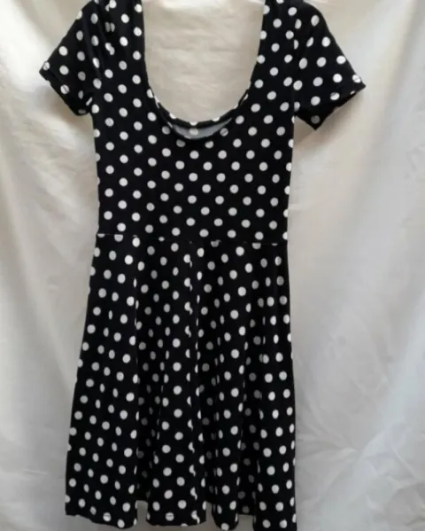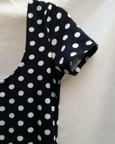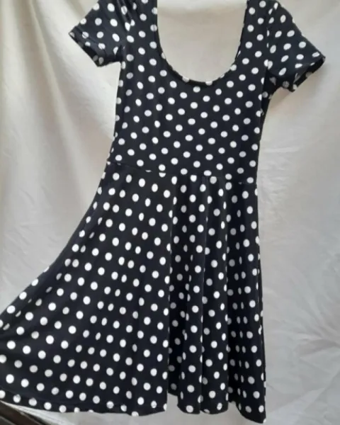 Hermoso vestido corto de puntos. Hermoso vestido corto, se uso una ves, manga corta, me encanta por que se estira y se amolda a tu figura, da una talla S y M, sin ningún detalle