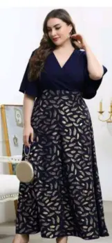 Para lucir belka y elegante en esa fiesta, hermoso vestido en azul marino con motivos dorados