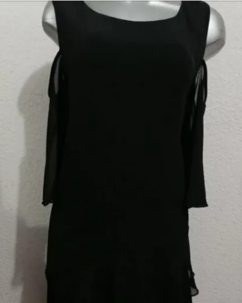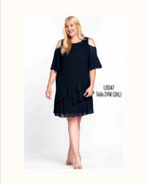 Vestido que sin duda puede ser un básico para esos eventos 3speciales, boda, funeral, una fiesta de coctail. En la falda trae unos tipos olanes con pedrería, y si se descocen, no te preocupes trae repuesto, forro del mismo tono. Medidas largo 106.5cm, axila a axila 67cm, tirante a tirante 40cm