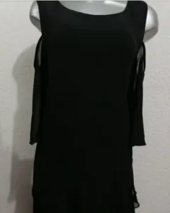 Hermoso vestido de fiesta negro. Vestido que sin duda puede ser un básico para esos eventos 3speciales, boda, funeral, una fiesta de coctail. En la falda trae unos tipos olanes con pedrería, y si se descocen, no te preocupes trae repuesto, forro del mismo tono. Medidas largo 106.5cm, axila a axila 67cm, tirante a tirante 40cm