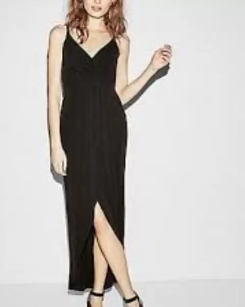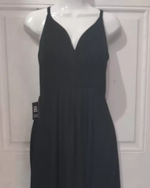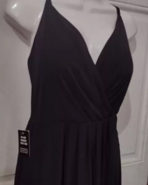 Hermoso vestido de Noche 🤩. Hermoso 😍 corte romano al frente en color negro , con medio fondo integrado talla 10 americano , falta lavado