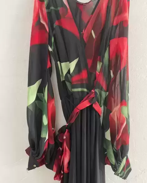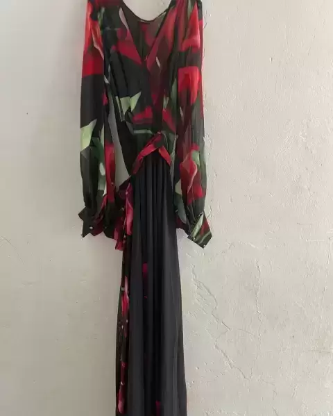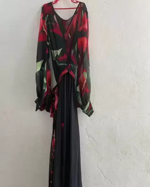 Hermoso vestido de la marca va va voon, es vestido largo y cómodo, si tela es suave y tiene un lazo para ajustar, se puede bailar sin perjudicar a la persona y tiene un hermoso diseño de flores