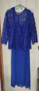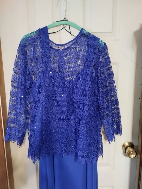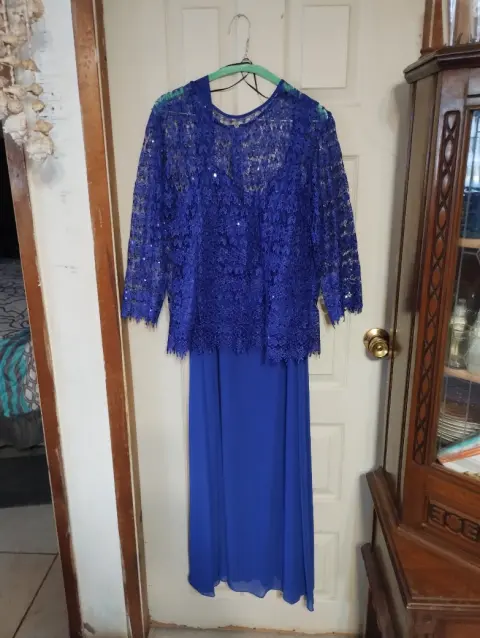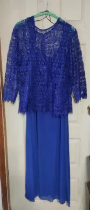 Hermoso vestido de noche azul royal. Vestido azul royal, aplicación de encaje con lentejuelas en la parte del torso, vestido interior de tirantes, con tela de gasa y fondo completo; excelente vestido para la madre de la novia!! ❤️👗🎉🥰