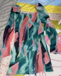 Vestido de tela muy moldeable, además de que trae un cordón si quiere subir más el vestido para que quede más corto y trae unas mangas que lo hacen lucir elegante