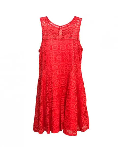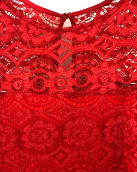 Solo con verlo enamora 😍 este lindo vestido rojo en crochet, es sin mangas y trae fondo en el mismo color del vestido, cierra en la parte de atrás con un lindo botón dorado.