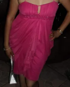 Hermoso vestido fiusha Liz Minelli. Hermoso vestido Corto Liz Minelli.Solo se usó una vez, está en excelente estado! Tiene una hermosa forma que hace ver la cintura más pequeña y la cadera más amplia!