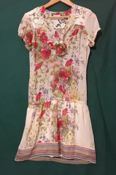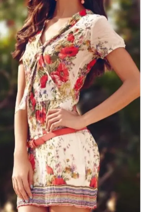 Hermoso vestido floral con detalle en la parte de abajo de líneas increíble.La parte de abajo cuenta con fondo blanco arriba es transparente.Medidas de hombro a hombro 40 cm de axila a axila 50 cm aparte de la cadera del resorte sin estirar 40 cm y de largo 90 cm.Va con un accesorio precioso de regalo 🎁