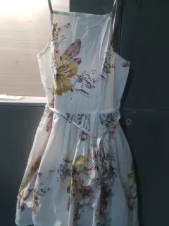 Hermoso vestido floreado, ligero de la parte de arriba, en la parte de abajo con un poco de vuelo y una ligera crinolina.