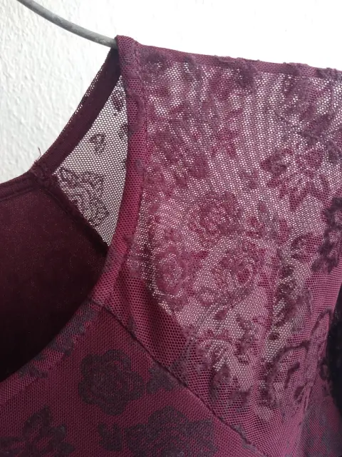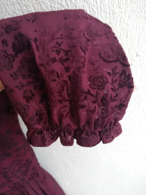 Ideal para niña-adolescente, talla 14, color vino, a la rodilla, tela de encaje con forro