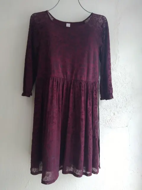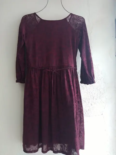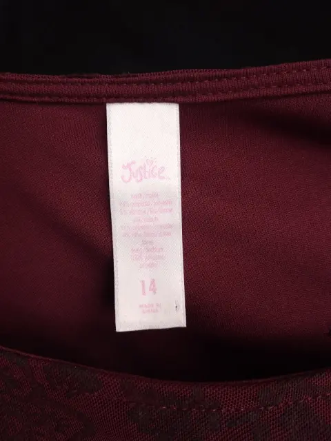 Hermoso vestido Justice. Ideal para niña-adolescente, talla 14, color vino, a la rodilla, tela de encaje con forro