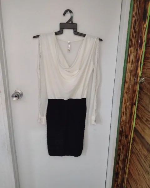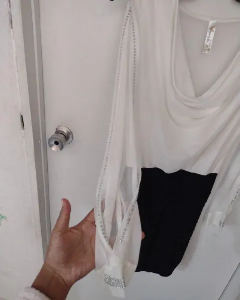 Hermoso vestido juvenil corto .. Hermoso vestido juvenil corto sin transparencia por la parte de enfrente para no dejar ver el busto por la parte de atrás con total transparemcia para lucir espalda en la parte de los brazos manga largo con una abertura que deja al descubierto los brazos y unos detalles en pedreria super padres parte de la falda licra gruesa que no permite se suba ni se transparente está de locura el vestido te Ara resaltar cuerpazo.