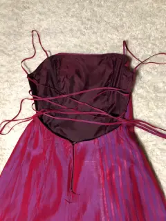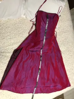 Hermoso vestido largo para ese evento especial, anexo fotos de las medidas para mejor visualización de la talla. Tiene en la tela 2 péqueñas rasgaduras de tela que casi no se notan.
