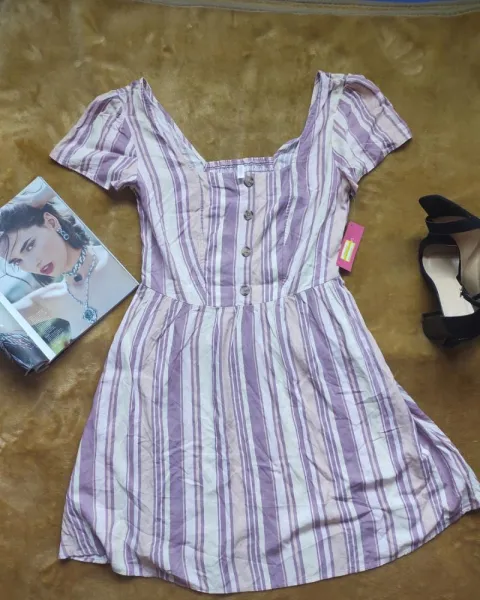 Hermoso vestido Lila. HERMOSO VESTIDO EN TONOS LILAS A RAYAS completamente NUEVO con etiqueta.▫️Marca: XHILARATION▫️ TALLA: S