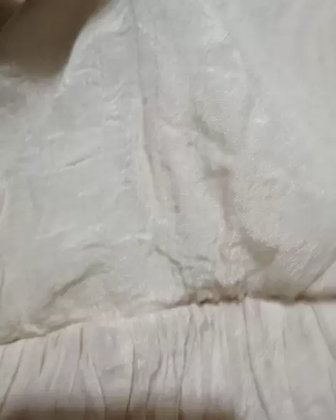 Es muy vaporoso y fresco con forro un pequeño olan en el cuello y resorte en la cintura