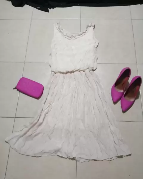 Hermoso vestido linea A. Es muy vaporoso y fresco con forro un pequeño olan en el cuello y resorte en la cintura