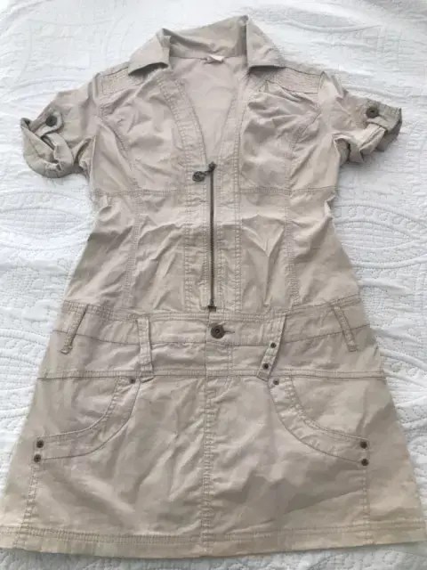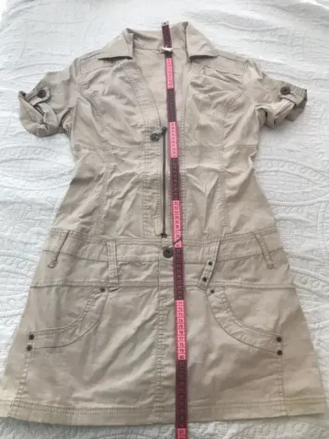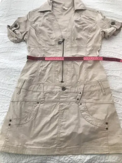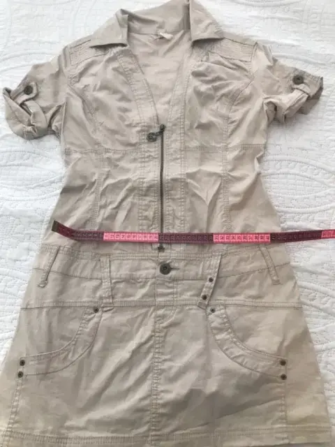 Bello vestido mezclilla importado talla l, pero es más para talla m, se ve muy lindo, muy poco uso.