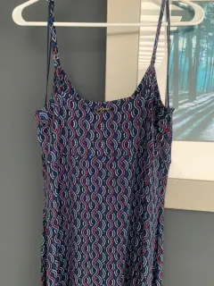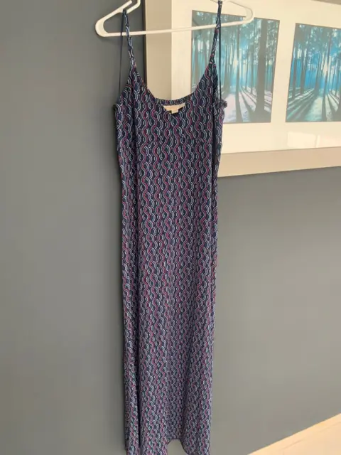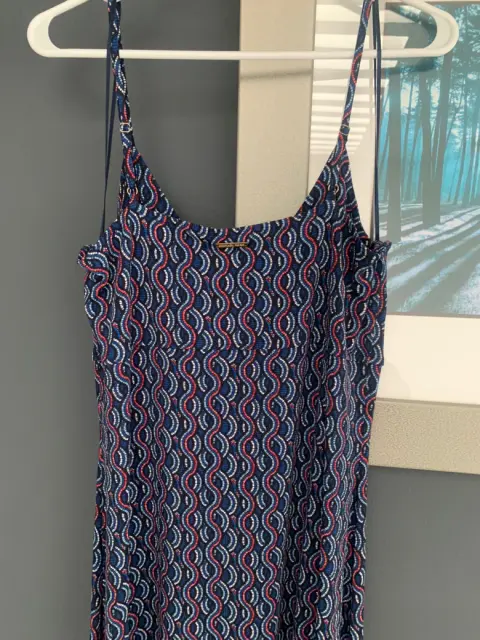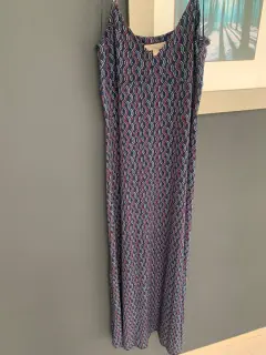 Vestido Michael Kors talla L (Grande) se usó un par de veces. Es vestido es largo en color azul Marino y con detalles en blanco y rojo. En verdad te hace lucir una buena forma de cuerpo.