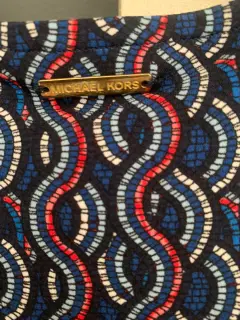 Hermoso vestido Michael Kors. Vestido Michael Kors talla L (Grande) se usó un par de veces. Es vestido es largo en color azul Marino y con detalles en blanco y rojo. En verdad te hace lucir una buena forma de cuerpo.