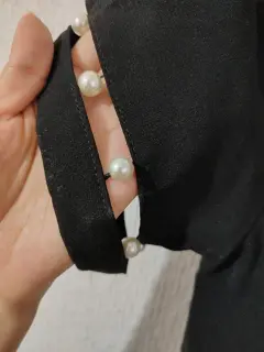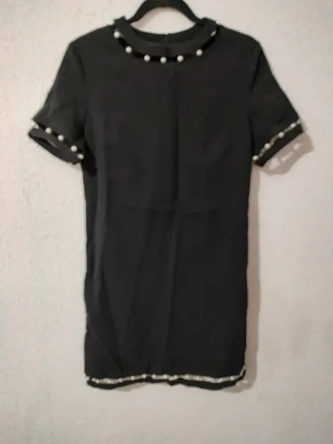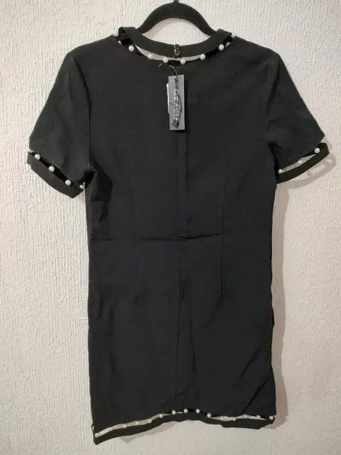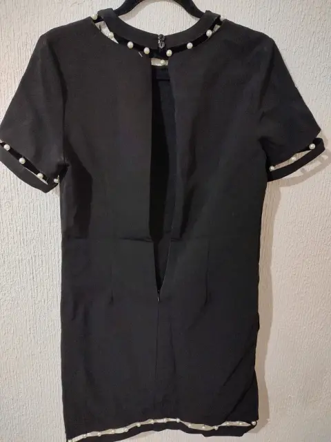 Hermoso vestido negro con perlas. Luce muy bonito el vestido, la tela es muy linda, se ve súper elegante y muy cool, las perlas lucen mucho de largo puede quedar a la rodilla