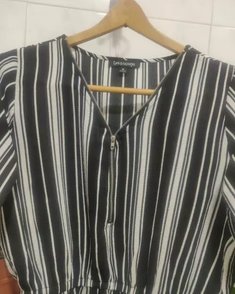 Hermoso vestido nuevo. Hermoso vestido nuevo de rayas negras y blancas, verticales por lo que ayuda a la figura.Súper padre! Con cierre al frente y elástico en la cintura.