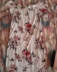 Hermoso vestido nuevo con etiqueta, color blanco con flores rosas, a medio hombro, se amolda al cuerpo y queda hermoso, se puede combinar con tenis, zapatos, sandalias o tacones.