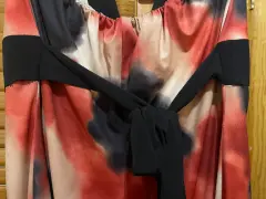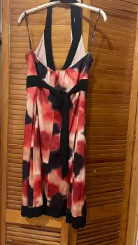 Tengo este vestido corto pre❤️ con hermoso escote y preciosa caída te hará lucir hermosa, los colores son muy padres y combinan con todo tipo de accesorios es ideal para fiestas en jardín. Tiene un pequeño detalle en la costura de la cinta queda con una puntada se muestra en foto.
