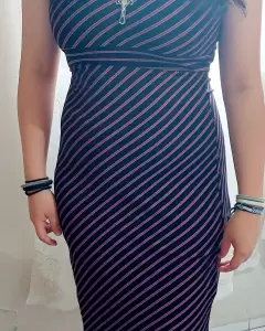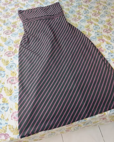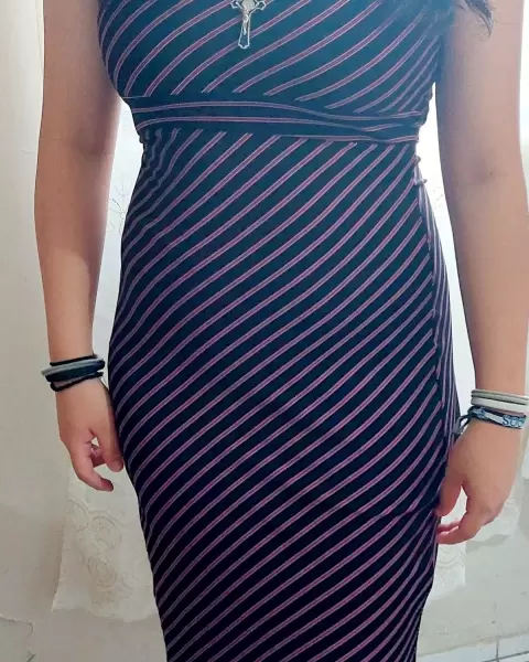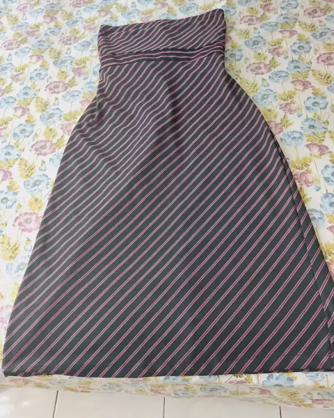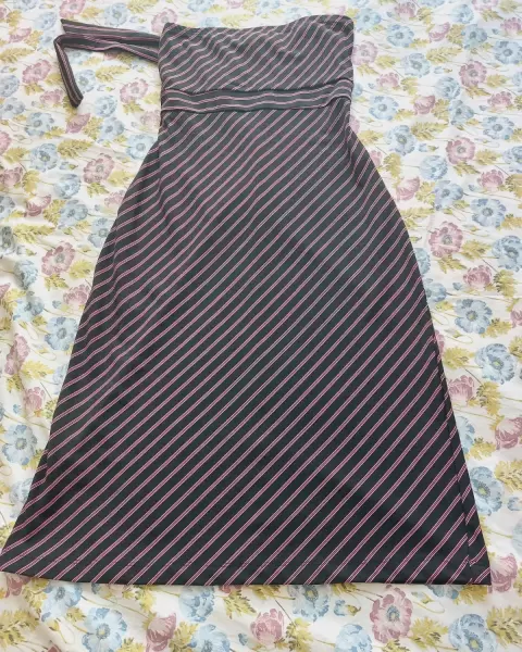 Hermoso Vestido Strapless. Vestido de rayas corto talla mediana color vino con negro