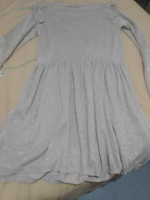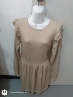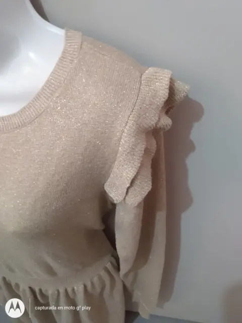 hermoso vestido tejido con destellos dorados la manga con olanes muy elegante cuello en U luce lindísimo 🤩😍