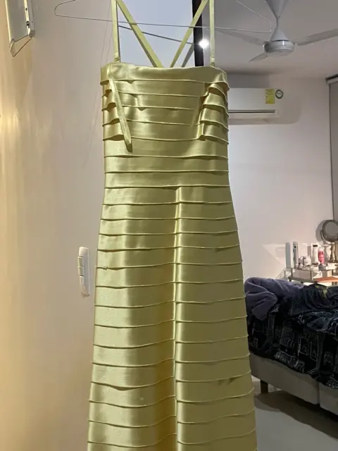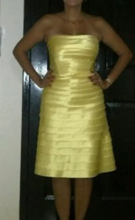 Hermoso Vestido tipo cóctel, color amarillo. Vestido tipo cóctel, color amarillo, con varillas a los lados para estilizar figura, puedes utilizar con o sin tirantes. Talla 4, marca BCBGMAXAZARIA