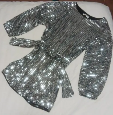 Vestido corto de lentejuelas, con cinturón de la misma tela, hermosos para fiesta, graduación, súper bonito y como nuevo. Solo usado una vez.